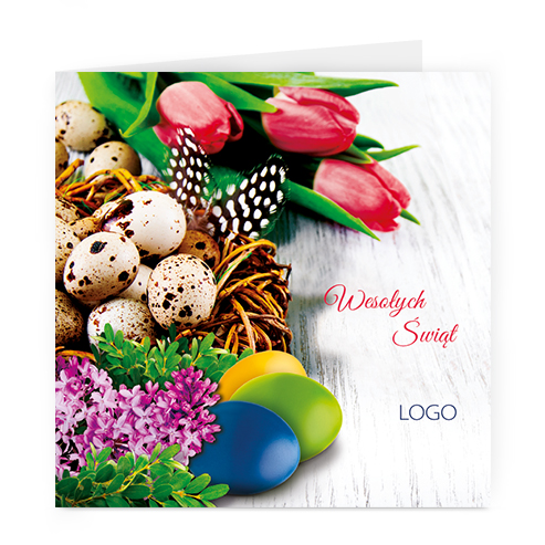 Logo i życzenia są drukowane bezpośrednio na kartce.