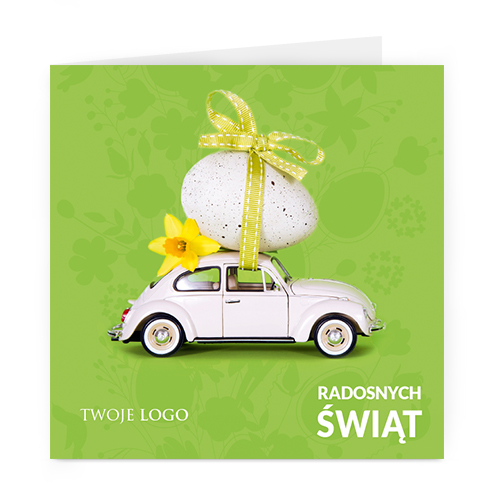 Logo i życzenia są drukowane bezpośrednio na kartce.
