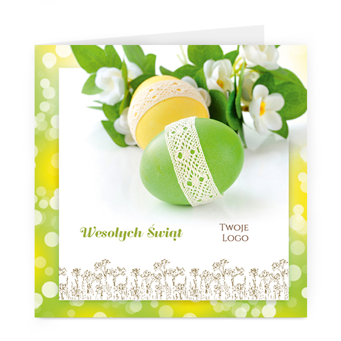 Istnieje możliwość zmiany haseł na froncie na dowolnie podaną wersję językową lub nadrukowanie własnego loga również na froncie kartki.