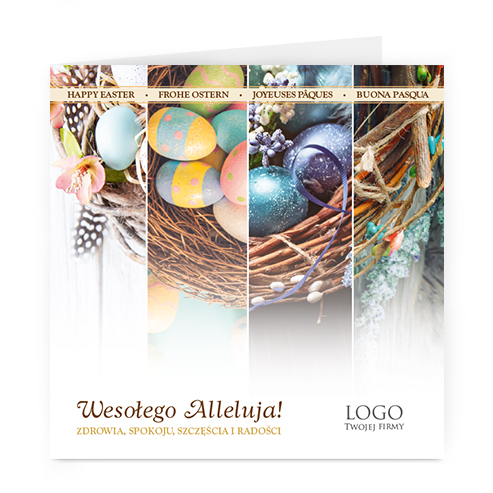 Istnieje możliwość zmiany haseł na froncie na dowolnie podaną wersję językową lub nadrukowanie własnego loga również na froncie kartki.