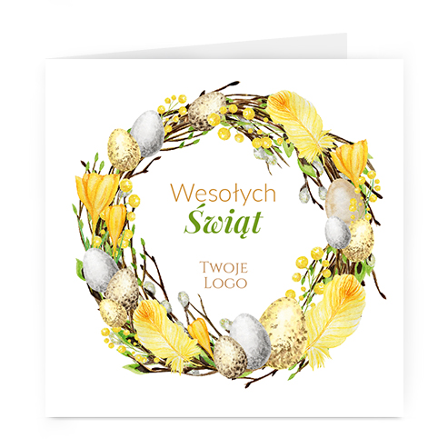 Istnieje możliwość zmiany haseł na froncie na dowolnie podaną wersję językową lub nadrukowanie własnego loga również na froncie kartki.