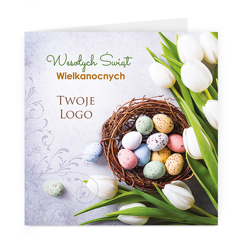 Logo i życzenia są drukowane bezpośrednio na kartce.