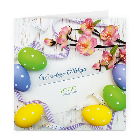 Logo i życzenia są drukowane bezpośrednio na kartce.
