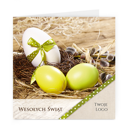 Logo i życzenia są drukowane bezpośrednio na kartce.