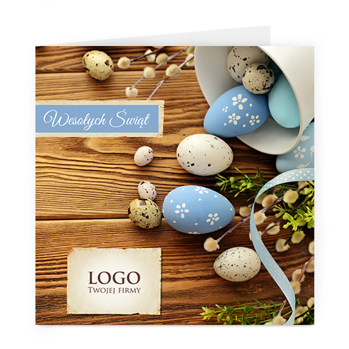 Logo i życzenia są drukowane bezpośrednio na kartce.