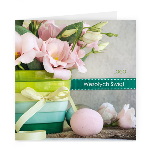 Logo i życzenia są drukowane bezpośrednio na kartce.