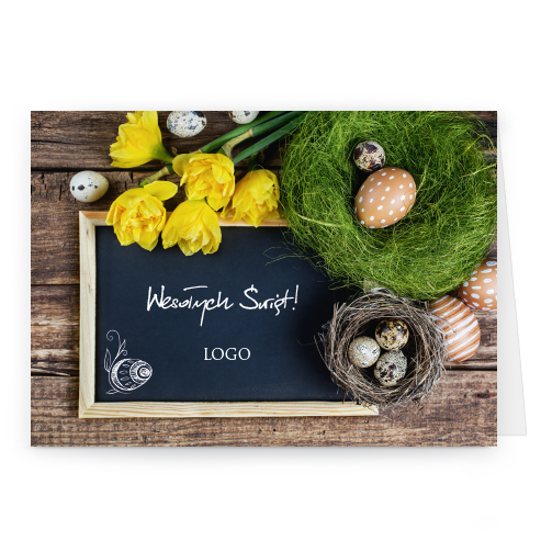 Logo i życzenia są drukowane bezpośrednio na kartce.