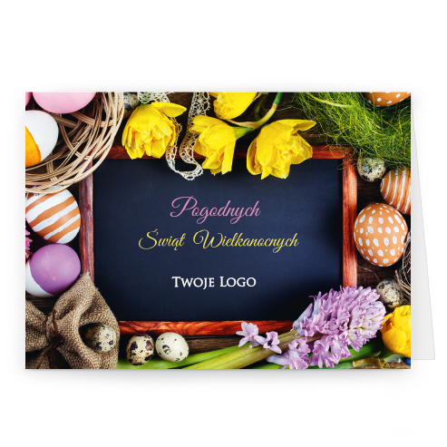wzór: poziom_09 SPECYFIKACJA: Logo i życzenia są drukowane bezpośrednio na kartce. Do każdej kartki dołączona jest biała koperta C6. Istnieje możliwość zmiany haseł na froncie na dowolnie podaną wersję językową. |