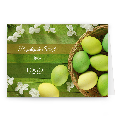 Logo i życzenia są drukowane bezpośrednio na kartce.