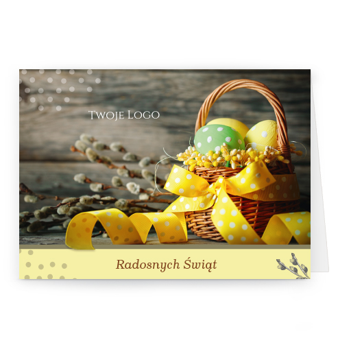 wzór: poziom_61 SPECYFIKACJA: Logo i życzenia są drukowane bezpośrednio na kartce. Do każdej kartki dołączona jest biała koperta C6. Istnieje możliwość zmiany haseł na froncie na dowolnie podaną wersję językową. |