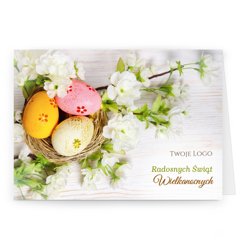 Logo i życzenia są drukowane bezpośrednio na kartce.