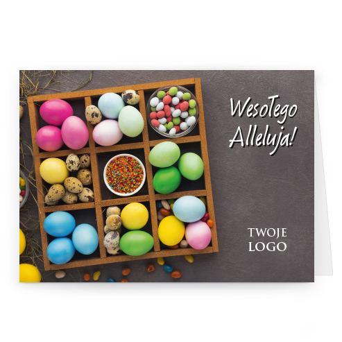Logo i życzenia są drukowane bezpośrednio na kartce.