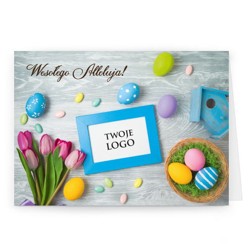Logo i życzenia są drukowane bezpośrednio na kartce.