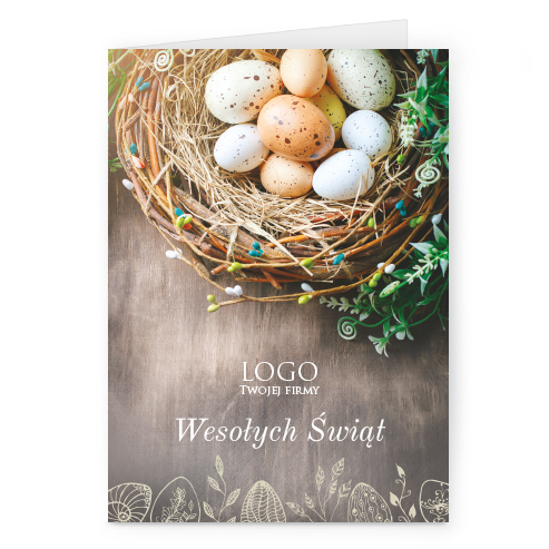 Logo i życzenia są drukowane bezpośrednio na kartce.