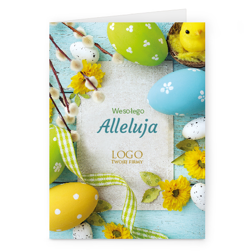 Logo i życzenia są drukowane bezpośrednio na kartce.