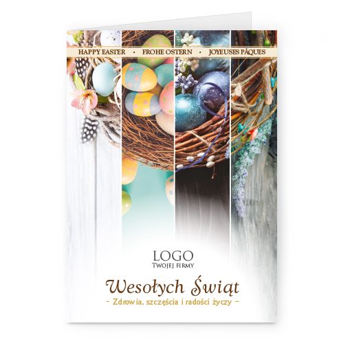 Logo i życzenia są drukowane bezpośrednio na kartce.
