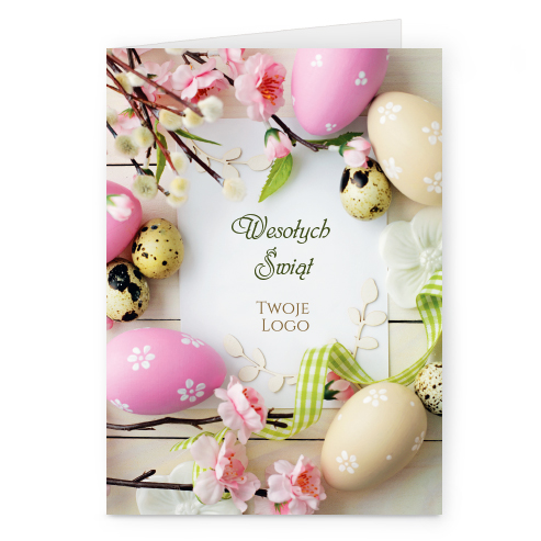 Logo i życzenia są drukowane bezpośrednio na kartce.