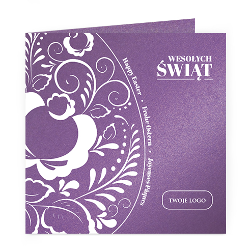Istnieje możliwość zmiany haseł na froncie na dowolnie podaną wersję językową lub nadrukowanie własnego loga W KOLORZE BIAŁYM również na froncie kartki.